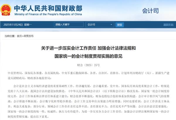 近日,財(cái)政部《關(guān)于進(jìn)一步壓實(shí)會(huì)計(jì)工作責(zé)任 加強(qiáng)會(huì)計(jì)法律法規(guī)和國(guó)家統(tǒng)一的會(huì)計(jì)制度貫徹實(shí)施的意見(jiàn)》(財(cái)會(huì)〔2025〕25號(hào))正式落地。新規(guī)進(jìn)一步明確會(huì)計(jì)責(zé)任主體、強(qiáng)化數(shù)據(jù)合規(guī)要求,推動(dòng)企業(yè)從“被動(dòng)合規(guī)”向“主動(dòng)提效”轉(zhuǎn)變。