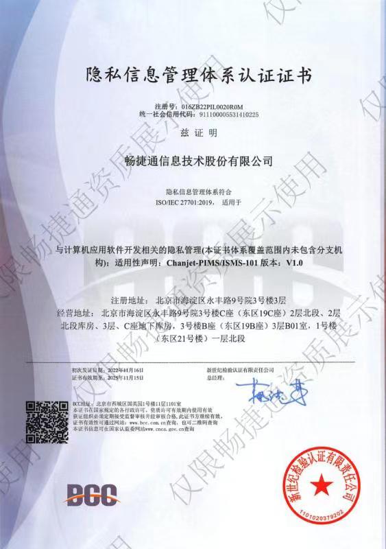 天津用友軟件得知,近日,暢捷通獲得了ISO27701隱私信息管理體系認(rèn)證,這是繼ISO27001信息安全管理體系認(rèn)證之后,暢捷通在隱私與信息安全領(lǐng)域獲得的又一項權(quán)威安全認(rèn)證。此項認(rèn)證的取得也標(biāo)志著暢捷通在數(shù)據(jù)管理、隱私保護(hù)方面達(dá)到了國際標(biāo)準(zhǔn)!