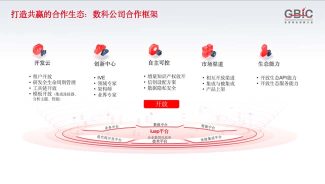 總結來說,第一,用友可以為數科公司提供完整的開發(fā)云,幫助數科公司將能力開放、集成;第二,雙方可一同打造創(chuàng)新中心,IVE、領域專家、架構師等專業(yè)人才將與數科公司聯合共創(chuàng)模型能力;第三,進行聯合創(chuàng)新以后,知識產權將歸屬于數科公司;第四,助力數科公司建立市場渠道,讓其能夠快速觸達到客戶;第四,開放生態(tài) API 能力、生態(tài)服務能力,從而加速數科公司的應用開發(fā)。