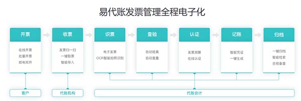 用友易代賬發(fā)票管理體系為企業(yè)提供了一站式的解決方案,實(shí)現(xiàn)了票據(jù)的開、收、查、識(shí)、算、記、檔一體化流程。大幅減少重復(fù)工作,降低票據(jù)風(fēng)險(xiǎn),讓客戶和代賬會(huì)計(jì)都能更加輕松、高效地進(jìn)行發(fā)票管理。